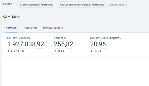| Средняя цена клика | 13,16 грн | 6,45 грн | -51% |