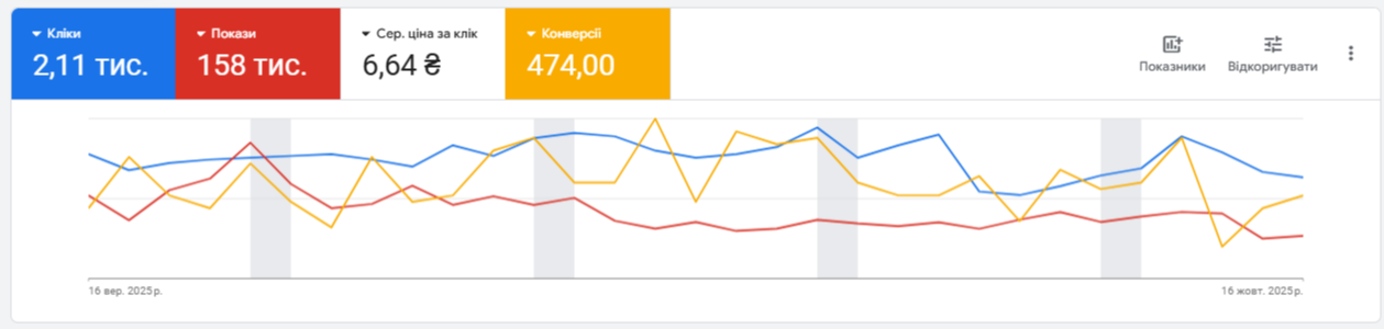 | Средняя цена за клик (CPC) | - | 6,64 грн | - |