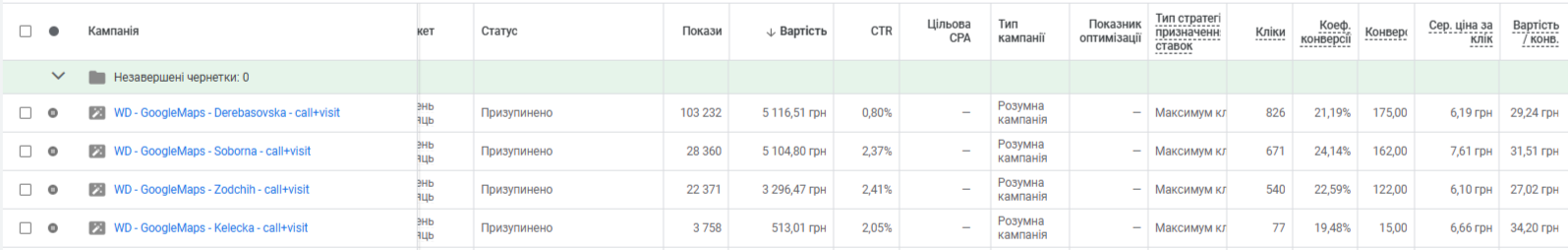 То есть, мы стартовали фактически «с нуля», без предварительных данных, потому что рекламные кампании ранее не запускались, предварительного аудита не было. К тому же, еще добавлялась проблема заблокированного профиля Google Business Profile